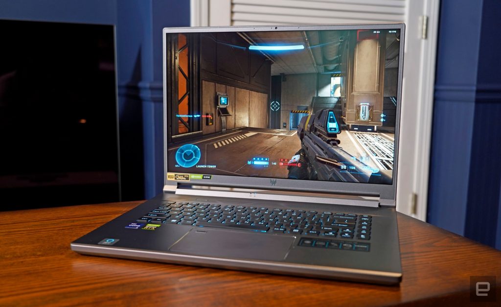 Halo Infinitefor example, reached a solid 85fps at the Triton’s native resolution at ultra graphics settings. While I missed the HDR and expansive view I’ve grown used to on the Alienware QD-OLED ultrawide monitor, I was surprised at just how immersive the game felt on a 16-inch display. You can thank the taller 16:10 aspect ratio for that – it sometimes felt like I was about to dive headfirst into Halo Infinite’s maps. (That could also be a sign that I need to make my desk a bit more ergonomic for laptops.) The 240Hz display also shined as I lowered the game’s graphics settings to reach higher framerates. I’m still not fully sold on such a high refresh rate, but it’s nice to see laptop makers pushing for smoother and more realistic gameplay.